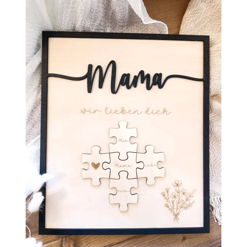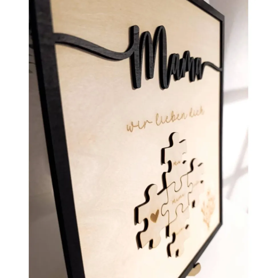Mama wir lieben dich personalisiertes Holzbild mit Puzzle. Ideal zum Muttertag, Valentinstag, Geschenk