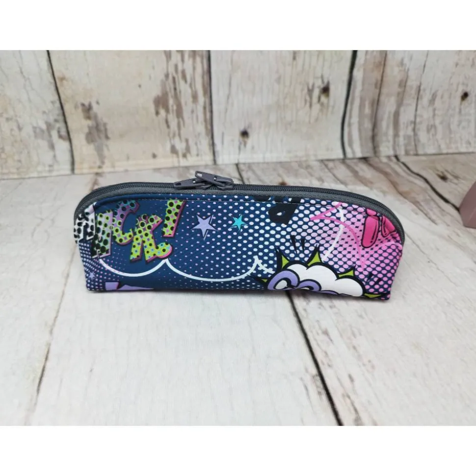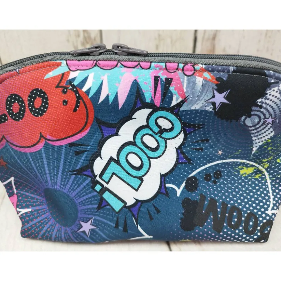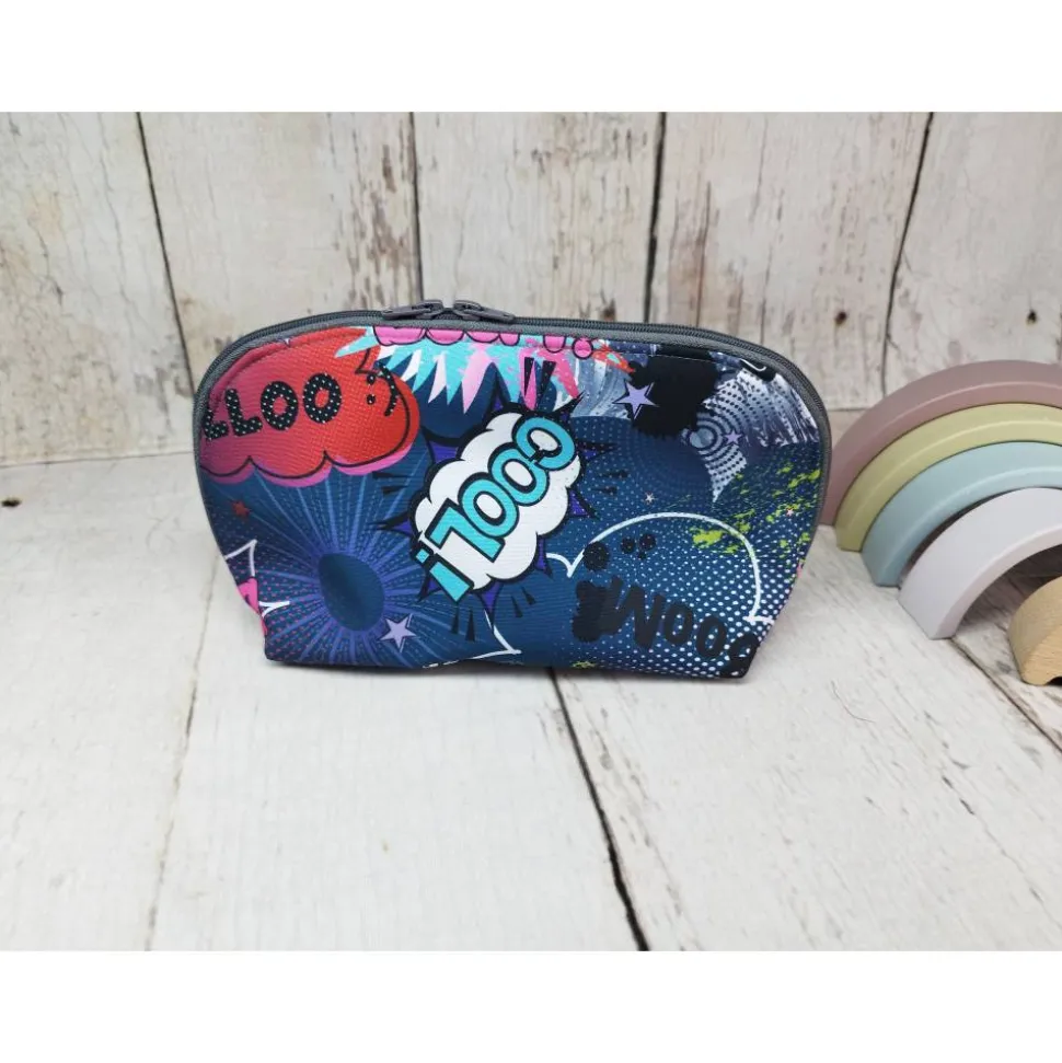 Entdecke das besondere Mäppchen Comic blau in 3 Größen – das ideale Federmäppchen, Stiftetasche oder kleines Täschen für Schule, Büro, Kosmetik oder unterwegs. Das Mäppchen begeistert mit einer stabilen, dreieckigen Form, die sogar im geschlossenen Zustand sicher steht. Öffnest du den Reißverschluss, hast du sofort den perfekten Überblick über alle Stifte und findest schnell das, was du brauchst.