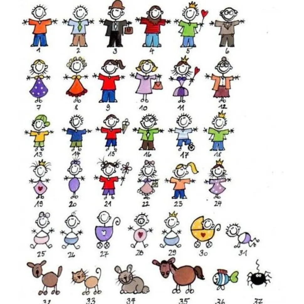 So funktioniert’s: Gib bei deiner Bestellung Familienname/Wunschtext, gewünschte Schriftart, Figuren-Auswahl, evtl. Sonderwünsche zur Gestaltung und die Vornamen für die Herzanhänger an. Die Auswahltabellen findest du bei den Produktfotos!