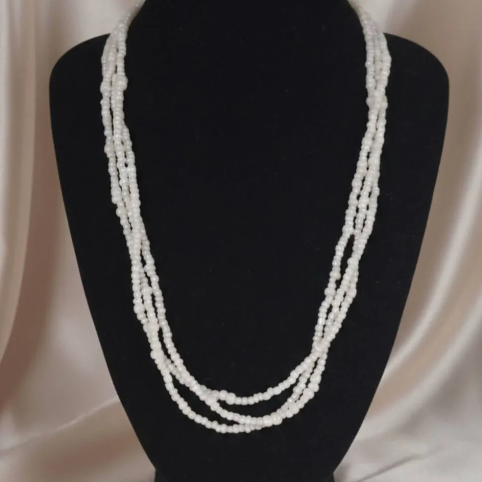 Moonlight Glow ist eine mehrreihige, handgefertigte Glasperlenkette, die klassische Eleganz mit moderner Leichtigkeit verbindet. Die feinen weißen Glasperlen mit zartem Champagnerschimmer reflektieren das Licht auf besonders weiche Weise und erinnern an sanftes Mondlicht auf Seide. Durch die mehrreihige Verarbeitung entsteht eine harmonische Tiefe, die dem Schmuckstück eine luxuriöse, aber dennoch ruhige Ausstrahlung verleiht.