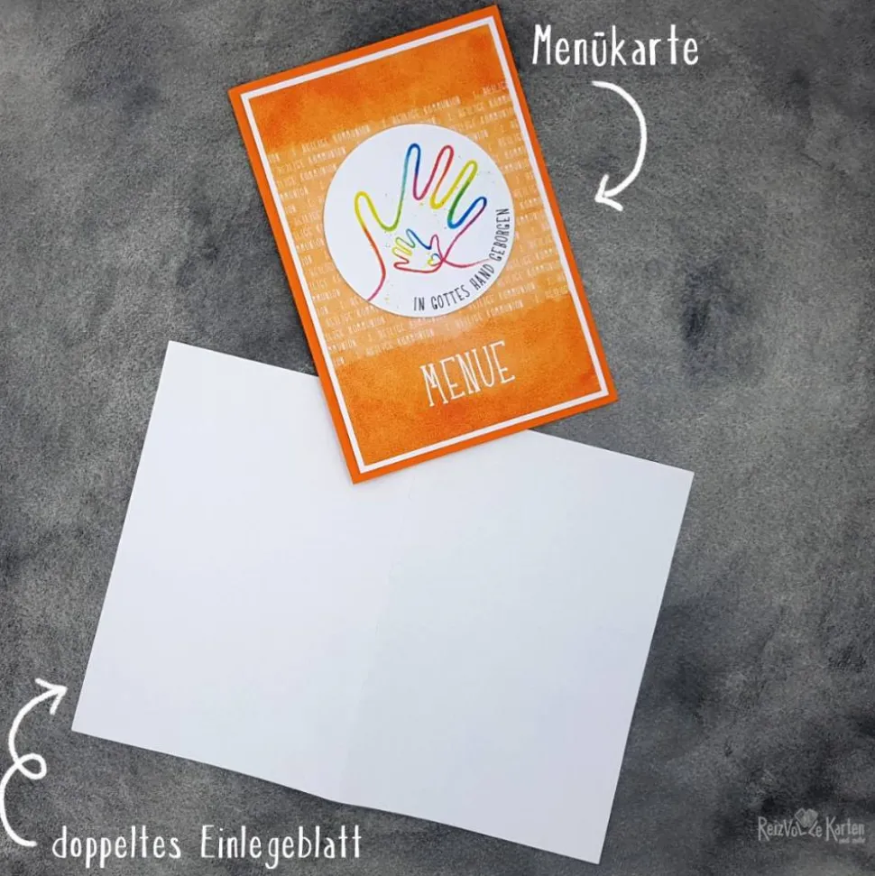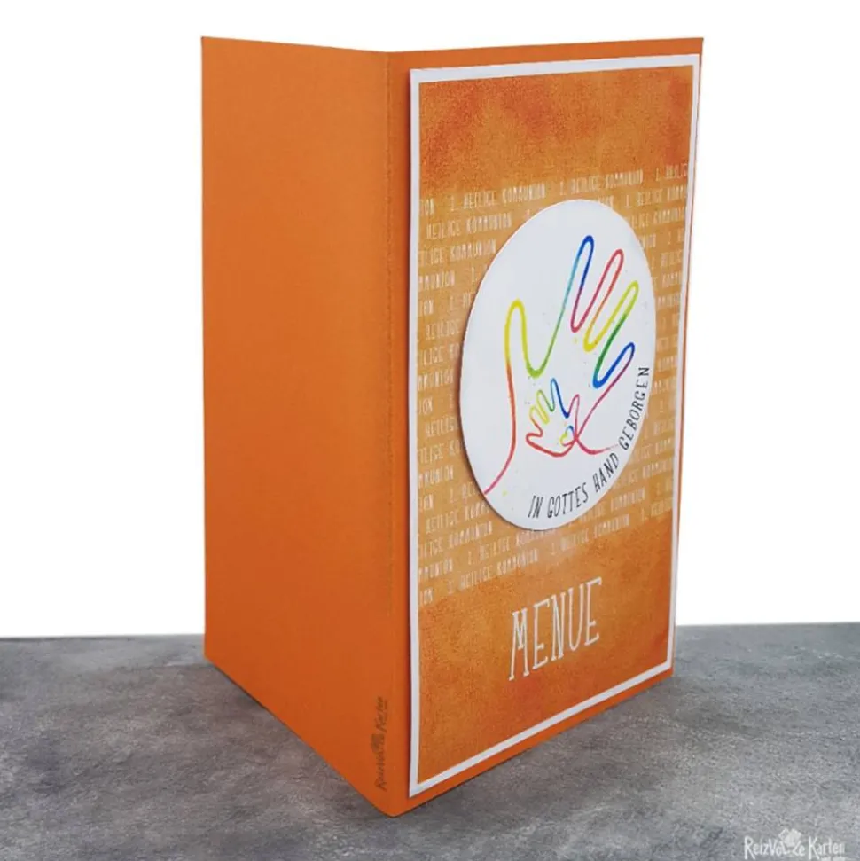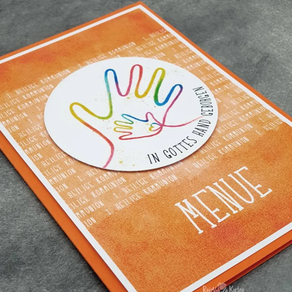 Menükarte Kommunion „In Gottes Hand geborgen“ – individuell & farbenfroh