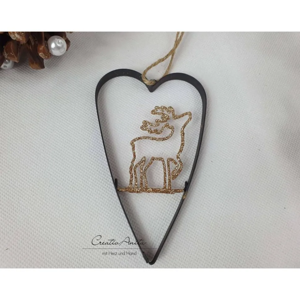 Metallhänger Herz mit Hirsch – Rentier schwarz-gold