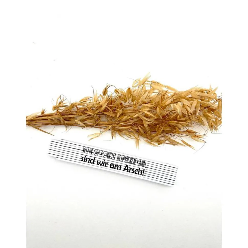 Wähle deine Lieblingsfarbe aus Natur, Weiß oder Schwarz und personalisiere den Zollstock mit deinem Wunschnamen (z.B. Opa, Jens, Svenja) und dem witzigen Spruch: „Wenn Papa es nicht reparieren kann, sind wir am Arsch!“. Damit hast du immer das richtige Maß zur Hand und sorgst garantiert für Lacher auf jeder Baustelle.