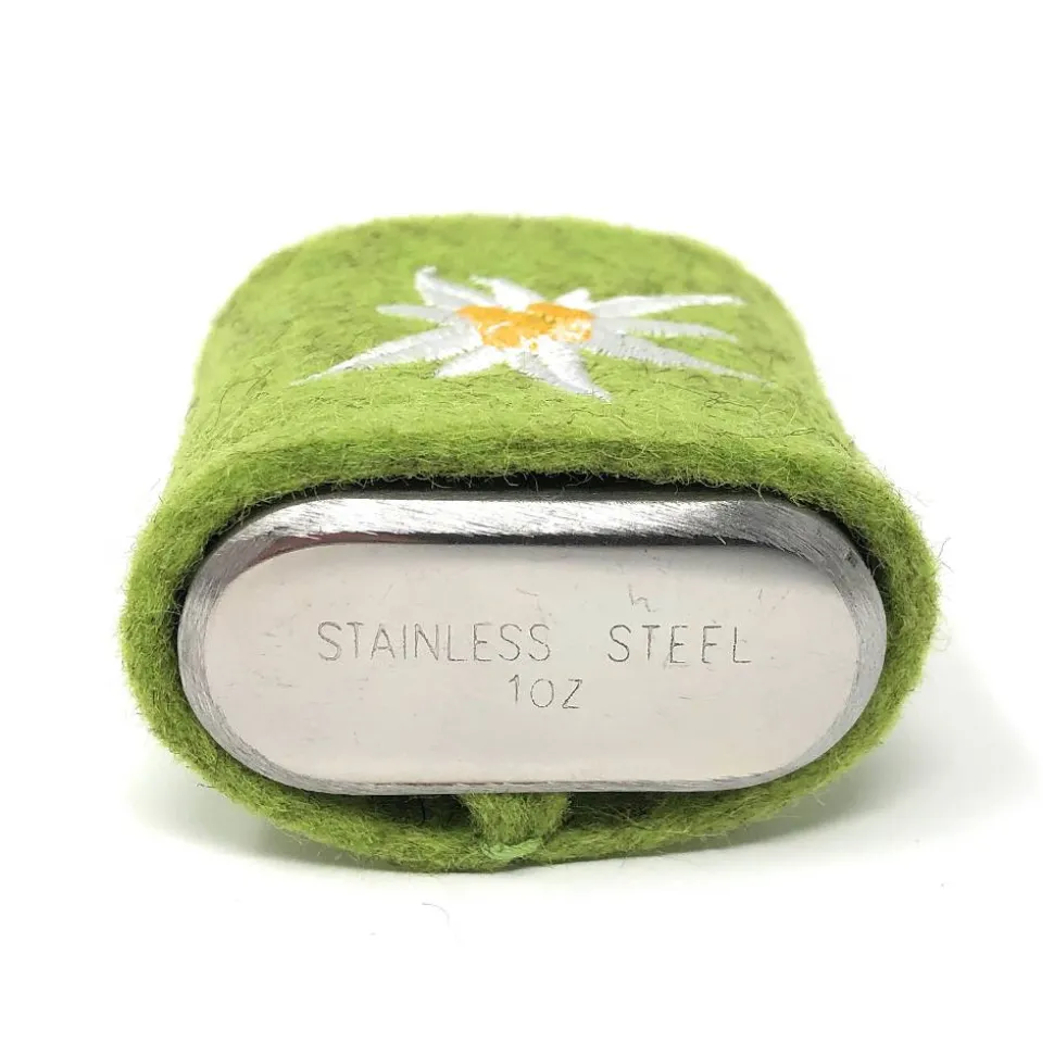 Der Flachmann besteht aus Edelstahl und hat ein Fassungsvermögen von ca. 30 ml (1 oz).