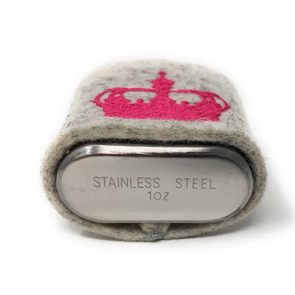 Der Flachmann besteht aus Edelstahl und hat ein Fassungsvermögen von ca. 30 ml (1 oz).