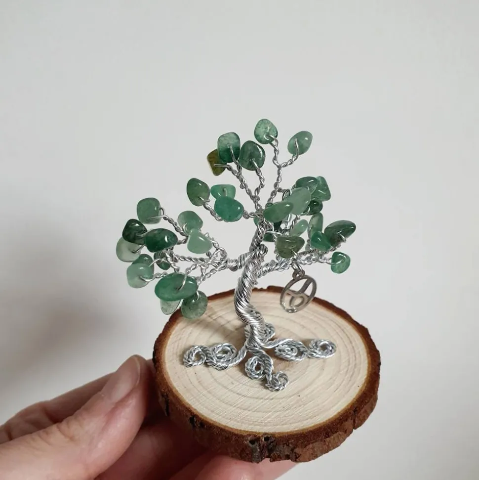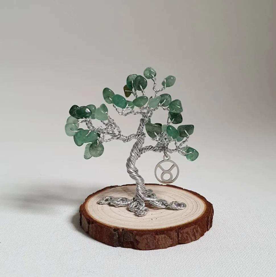 Dieser Mini Glücksbaum wird in sorgfältiger Handarbeit gefertigt. Der filigrane Stamm entsteht aus silberfarbenem Aluminiumdraht. Die Krone besteht aus ausgewählten Edelstein Splittern. Ergänzt wird der Baum durch einen kleinen Sternzeichen-Anhänger, der ihm seine persönliche Bedeutung gibt.