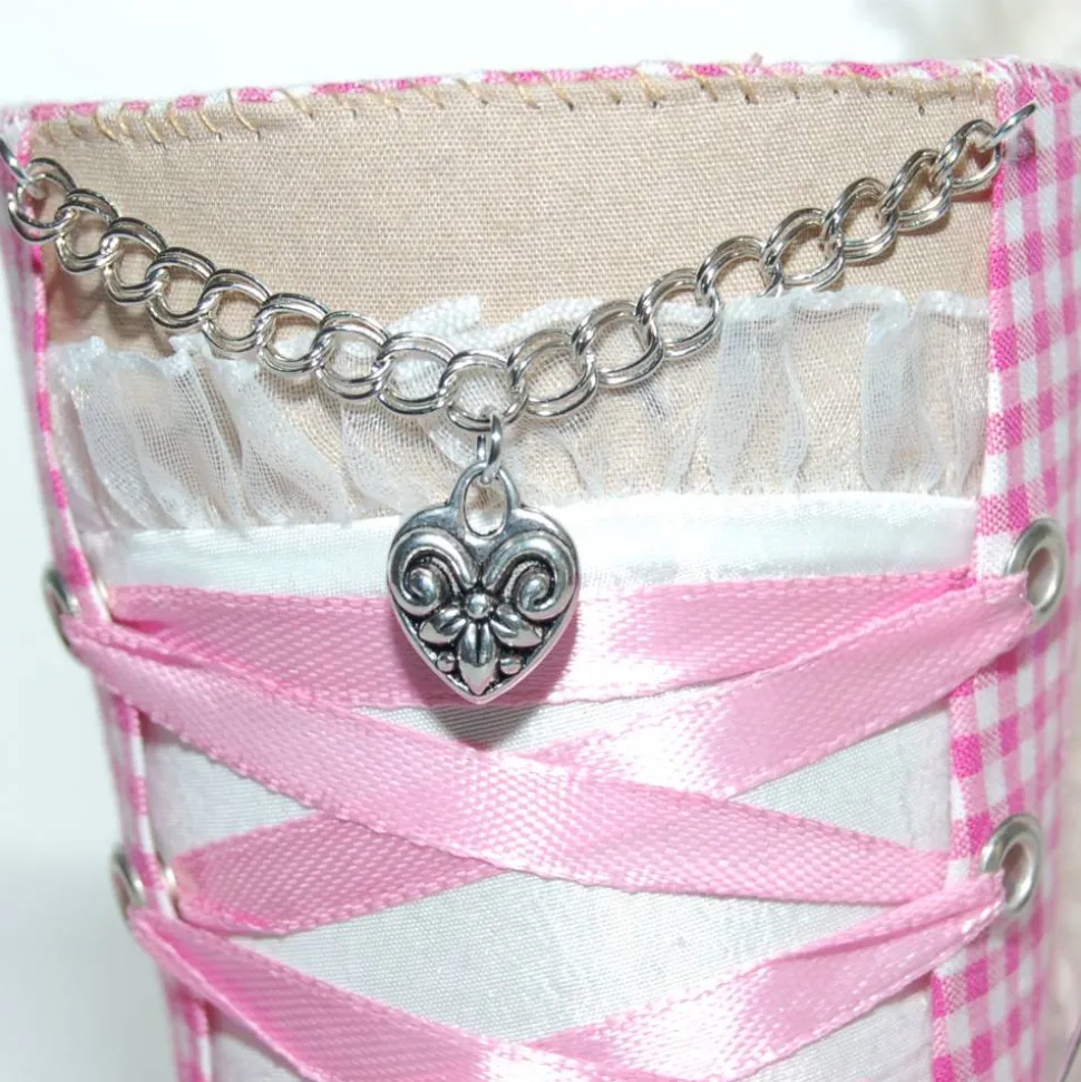 Ob als verspielte Ergänzung zur klassischen Flechtfrisur oder als stilvolles Statement zum modernen Dirndl – dieser Mini-Hut hebt deinen Look auf das nächste Level. Die gelungene Mischung aus karierter Stoffoptik, liebevoller Schnürung und traditionellen Accessoires macht diesen Fascinator zum idealen Begleiter für alle, die Tradition kreativ interpretieren und dabei Stilbewusstsein mit einem Augenzwinkern zeigen wollen.