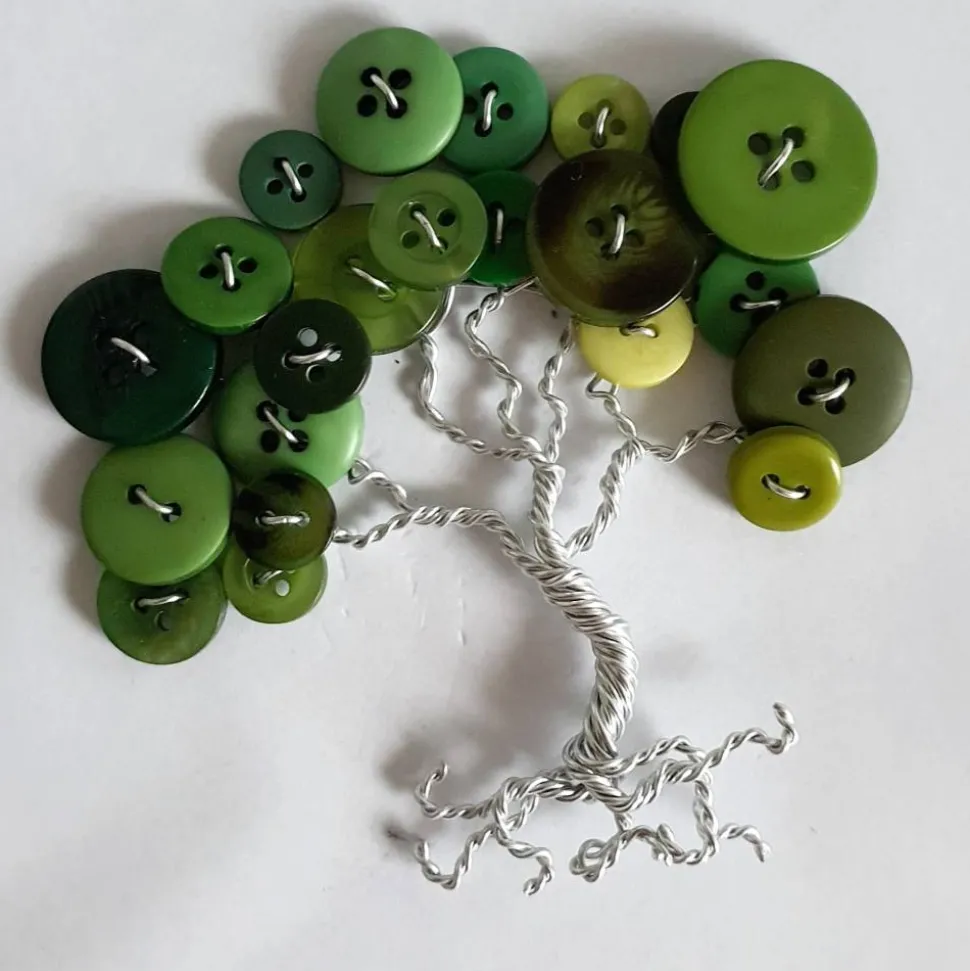 Sie können sich Ihren Knopfbaum ganz nach Ihren Wünschen anfertigen lassen. Da ich jeden Knopfbaum von Hand fertige kann ich solche Wunsch berücksichtigen. Die Bilder zeigen Ihnen wie der Knopfbaum ungefähr aussehen würde. Da jeder Knopfbaum ganz individuell gefertigt wird, sieht jeder anders aus. Für den Knopfbaum verwende ich fast 3 Meter Draht und zwischen 20 und 30 Knöpfen. Den ich von Hand mit speziellen Techniken biege und drahte. Um dieses Design zu fertigen. Sobald der Knopfbaum fertig ist wird dieser von mir in den 3D Bilderrahmen eingesetzt. Diesen können sie dann hinstellen oder anhängen.