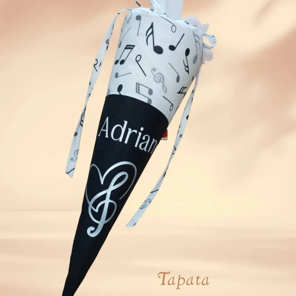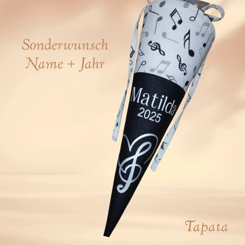 ➡ Namenswunsch: Auf Wunsch kann die Schultüte mit dem Namen oder einen Titel (z.B. Musiklehrer) versehen werden. Bitte geben Sie in das Feld Personalisierungswünsche den Wunschtext ein. Max. 20 Zeichen. Je nach Länge wird die Schriftgröße angepasst.