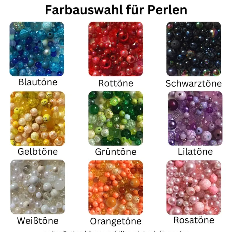 – Farbe der Perlen: Blautöne/ Rottöne/ Schwarztöne/ Gelbtöne/ Grüntöne/ Lilatöne/ Weißtöne/ Orangetöne/ Rosatöne*