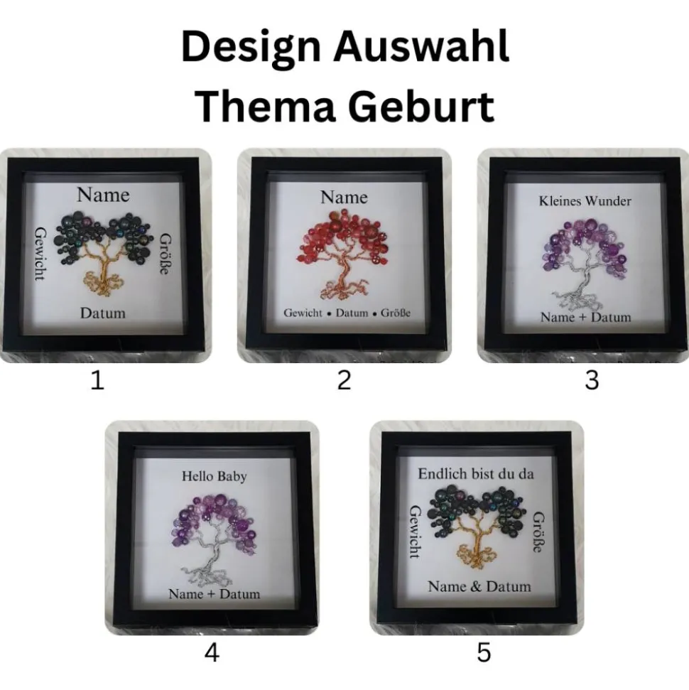 Sie können sich Ihren Perlenbaum ganz nach Ihren Wünschen anfertigen lassen. Da ich jeden Perlenbaum von Hand fertige kann ich solche Wunsch berücksichtigen. Die Bilder zeigen Ihnen wie der Perlenbaum ungefähr aussehen würde. Da jeder Perlenbaum ganz individuell gefertigt wird, sieht jeder anders aus. Für den Perlenbaum verwende ich fast 3 Meter Draht und zwischen 40 und 50 Perlen. Den ich von Hand mit speziellen Techniken biege und drahte. Um dieses Design zu fertigen. Sobald der Perlenbaum fertig ist wird dieser von mir in den 3D Bilderrahmen eingesetzt. Diesen können sie dann hinstellen oder anhängen.