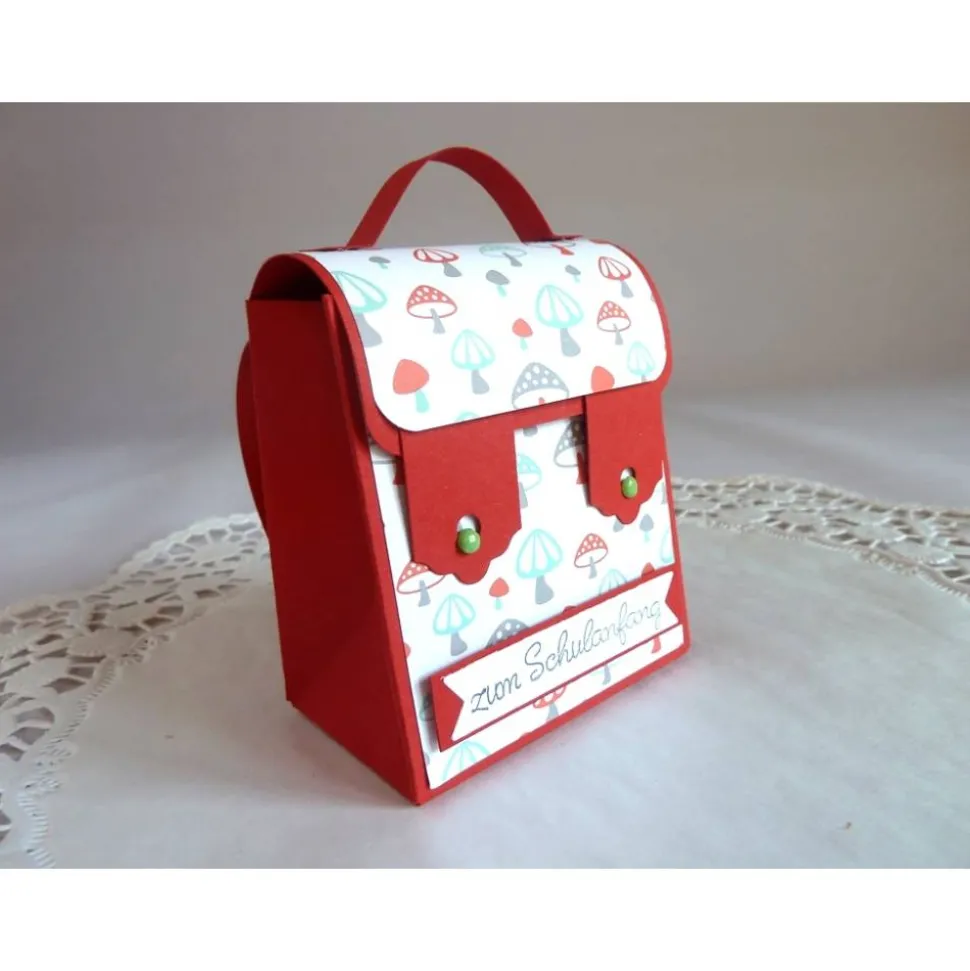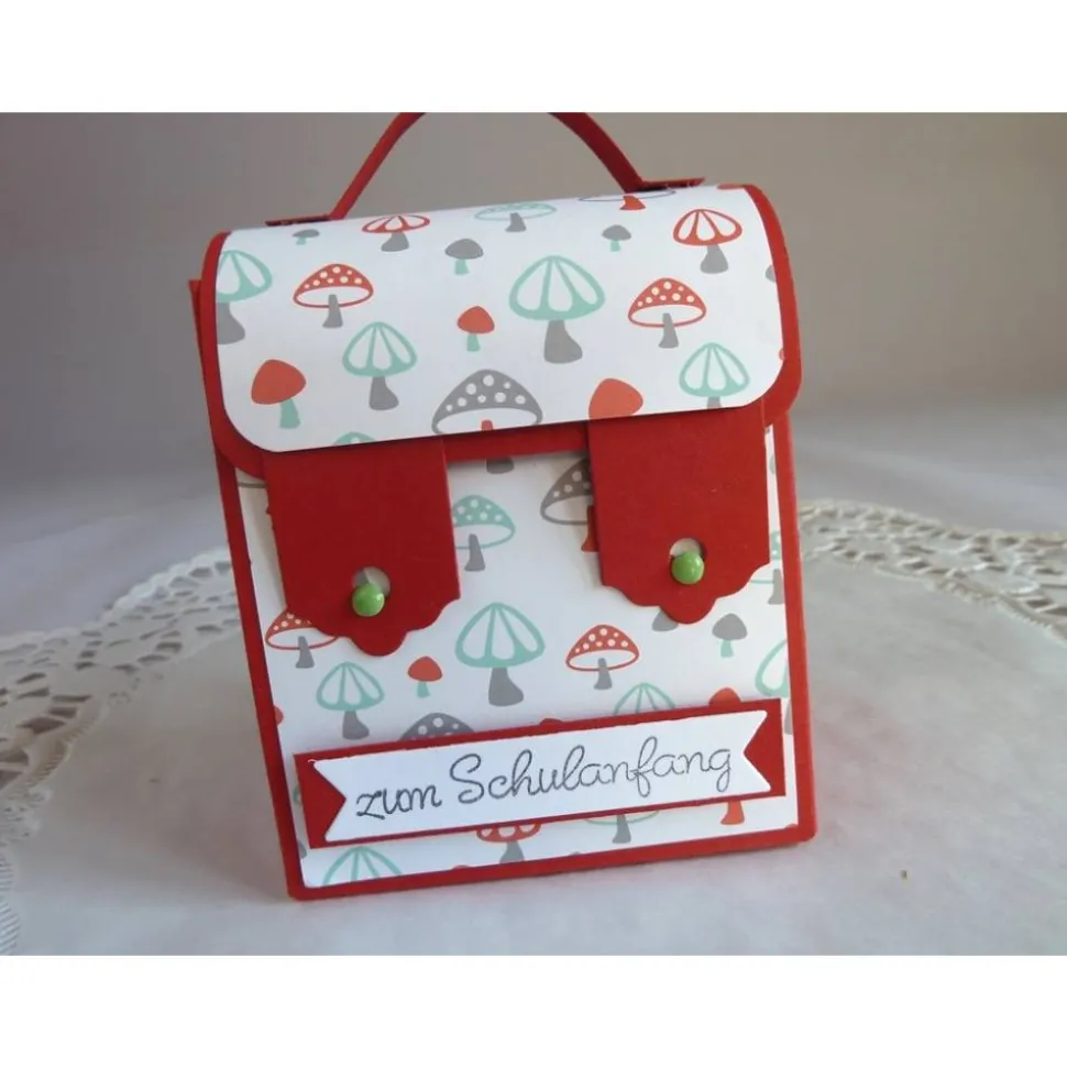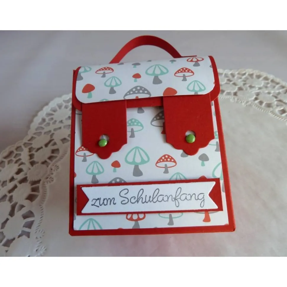 Zum verschließen des Ranzen werden die Laschen über die Rundkopfklammern geschoben.