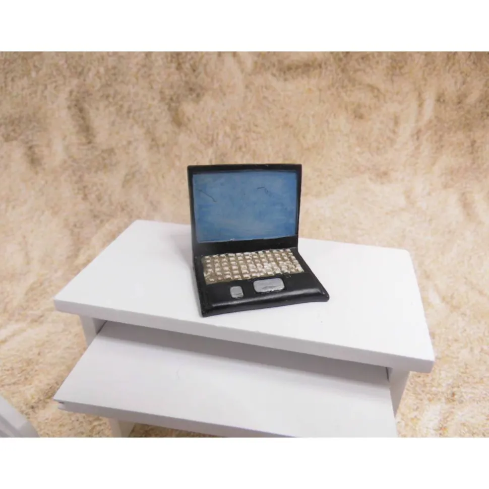 Miniatur Laptop schwarz für deine PC Büroausstattung – perfekt geeignet für das Wichtelbüro, das Home Office oder als originelle Dekoration zum Basteln. Dieses dekorative Miniaturstück hat eine Größe von 4 x 3,5 cm und ist aus hochwertigem Resin gefertigt. Der Monitor ist mit einem Bildmotiv auf der Vorderseite versehen und macht die Szene besonders realistisch.
