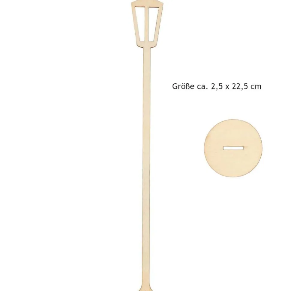 Die kleine Holzlaterne hat eine Größe von ca. 2,5 x 22,5 cm. Die Laterne wird einfach zusammengesteckt und ist fertig. Mit der Miniatur Straßenlaterne lassen sich Wichtelwelten und andere Mini-Landschaften gestalten.