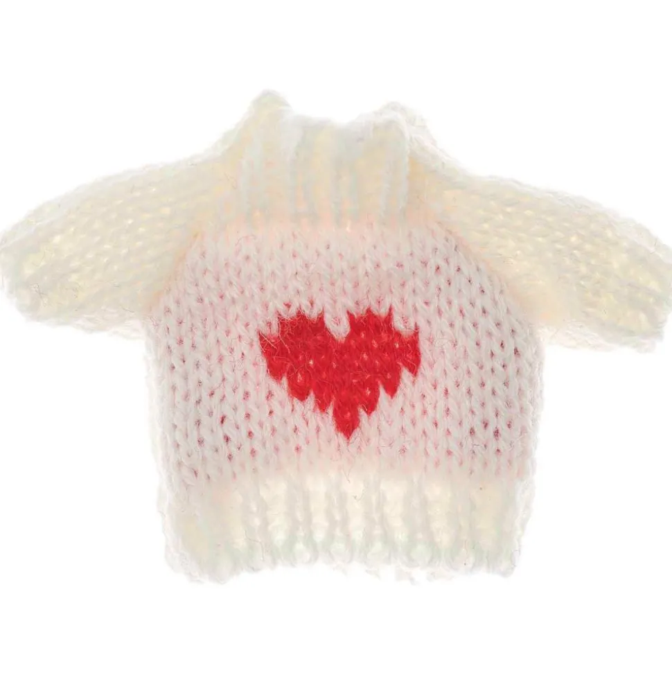 Niedlicher kleiner Mini-Pullover zum Gestalten der eigenen Wichtelwelt. Der kleine Pullover mit dem roten Herz kann auf eine Leine gehängt werden oder dekorativ auf einem Mini-Stuhl platziert werden.