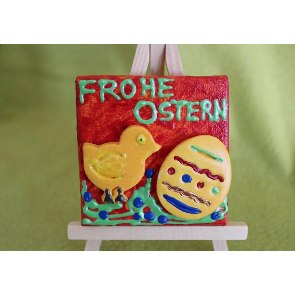 Minibild Collage  FROHE OSTERN  Küken und Osterei auf einem Minikeilrahmen Geschenk zu Ostern Osterdeko