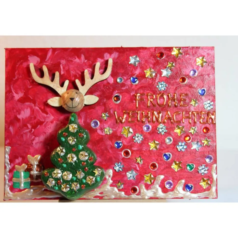 Minibild FROHE WEIHNACHTEN, kleine Collage Weihnachtsdeko mit Rentierkopf aus Holz, nette Tischdeko oder Gastgeschenk