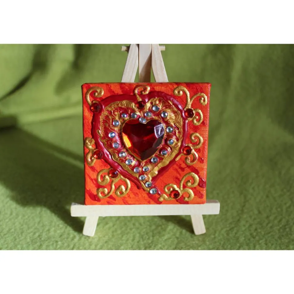 Minibild GLITZERHERZERL Acrylmalerei Keilrahmen Staffelei Geschenk zu Muttertag Valentinstag für Verliebte