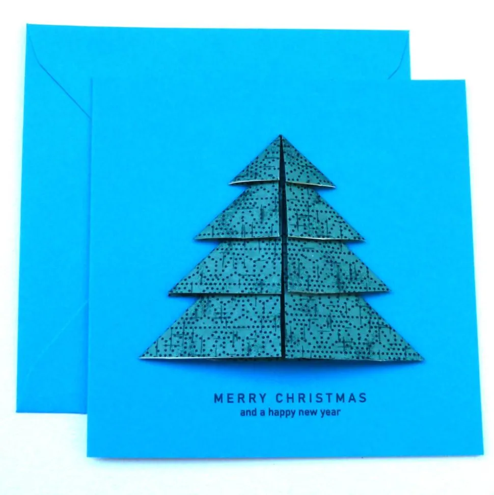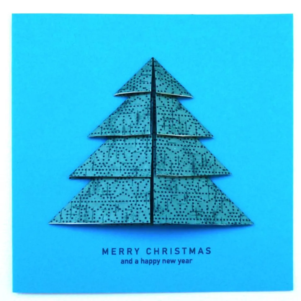 Weihnachtliche Doppelklappkarte mit Origami Weihnachtsbaum und Weihnachtsgruss
