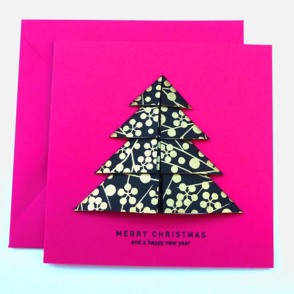 Weihnachtliche Doppelklappkarte mit Origami Weihnachtsbaum und Weihnachtsgruss
