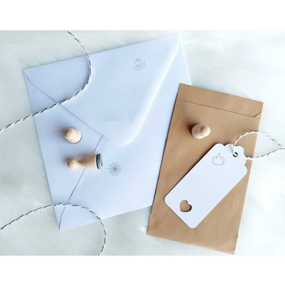 Ministempelset Halloween | 3 Stempel mit 12mm Durchmesser | Holzstempel Halloween / Allerheiligen | Spinnennetz Hexenhut