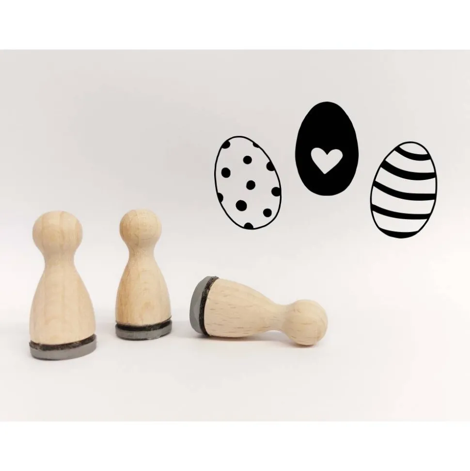 Ministempelset Ostereier gezeichnet | 3 Stempel mit 12mm Durchmesser | Holzstempel Frühling / Ostern