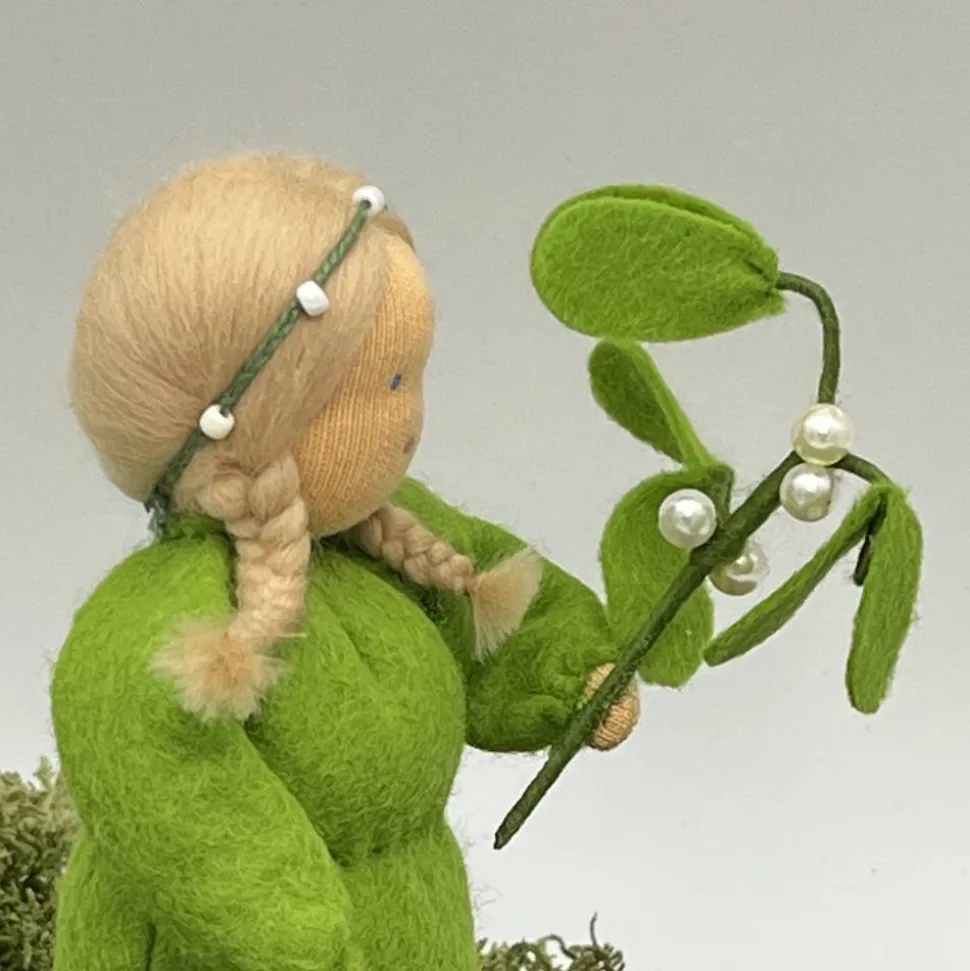Das Püppchen ist unten geschlossen und für einen guten Stand unten mit feinem Dekokies und der Rest mit reiner Schurwolle gefüllt.