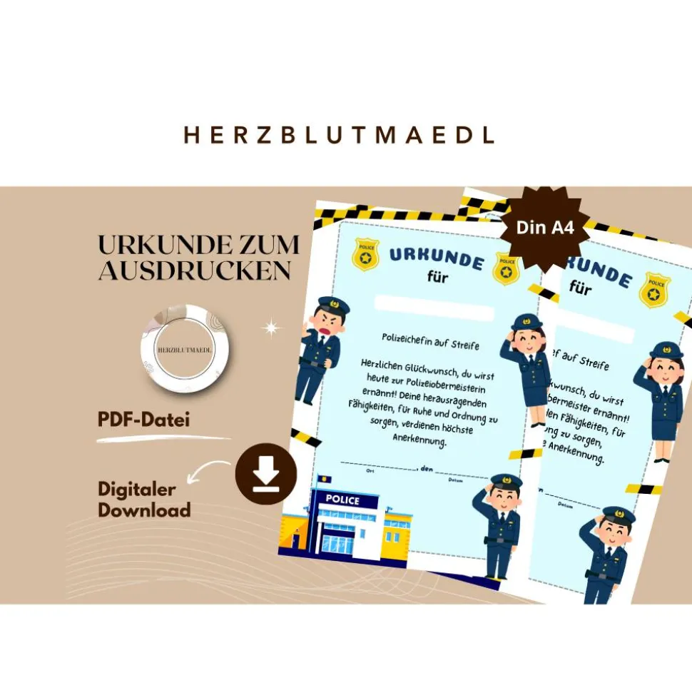 Für eine persönliche Note bieten wir dir die Möglichkeit, deine eigene Botschaft oder Widmung auf der Urkunde zu verewigen. Gegen einen geringen Aufpreis von nur 5 Euro kannst du deinen individuellen Text hinzufügen lassen, sei es eine herzliche Glückwunschnachricht, ein inspirierendes Zitat oder ein spezielles Datum. Dieses Angebot ist exklusiv in unserem Shop verfügbar, um sicherzustellen, dass dein Mitgebsel noch persönlicher wird. Lege einfach meinen Artikel „Urkunde mit Wunschtext“ zusätzlich in deinen Warenkorb und hinterlasse uns deine gewünschte Nachricht. Wir kümmern uns dann um den Rest, damit der Kindergeburtstag für immer unvergesslich bleibt.