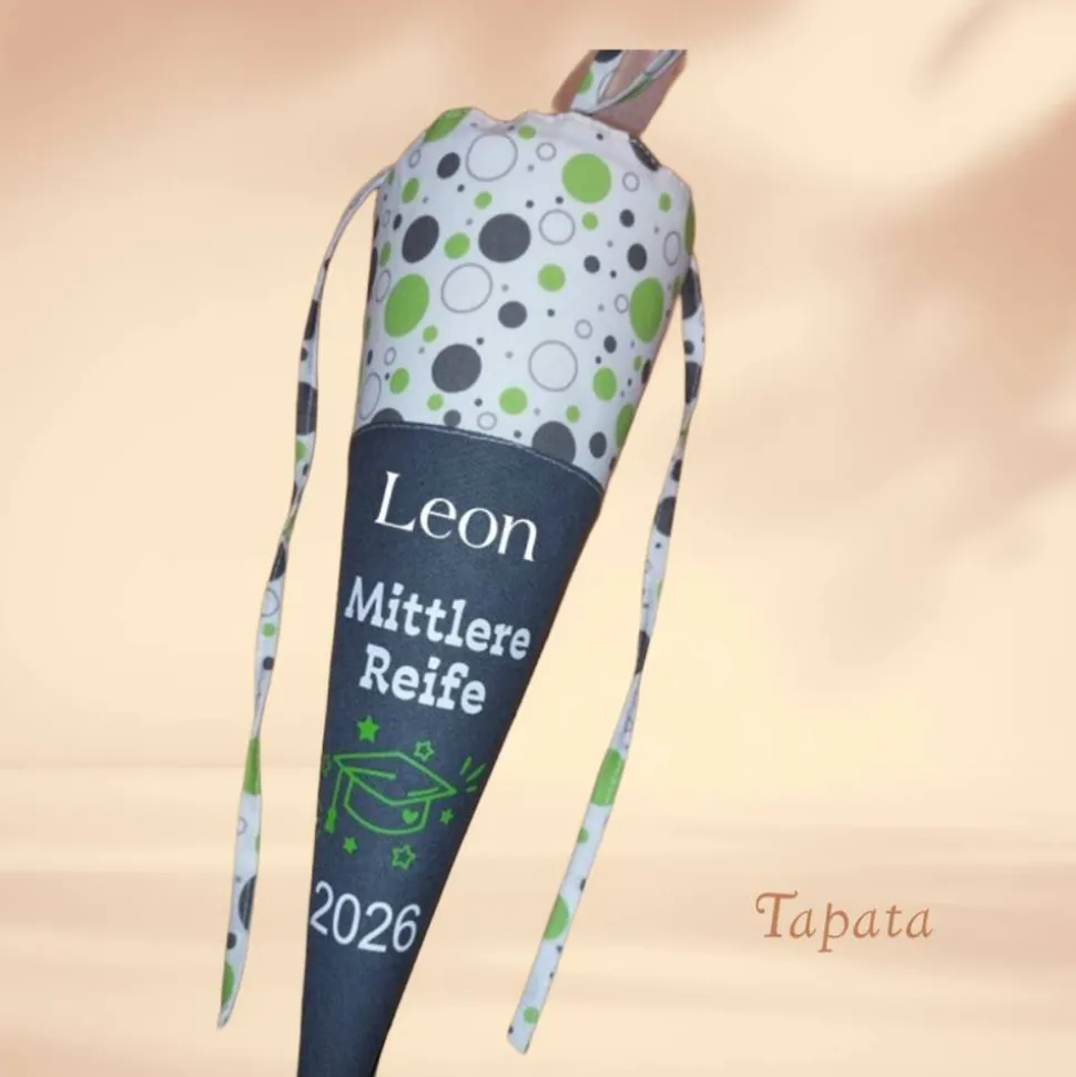 Angeboten wird eine kleine Schultüte mit einem passendenSpruch zum Realschulabschluss / Mittlere Reife. Jahreszahl wird entsprechendangepasst. Erhältlich ist sie als kleine Schultüte als Mitbringsel für diegroße Feier