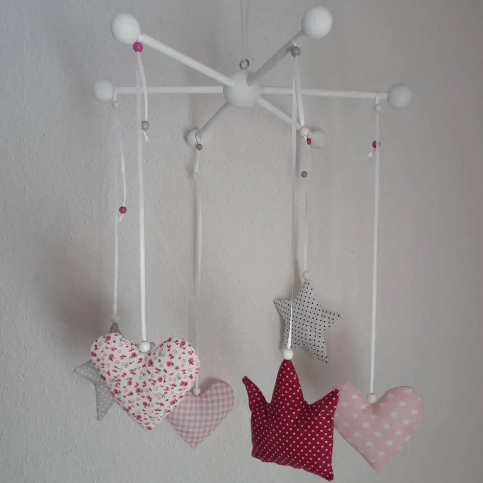 Das Mobile besteht aus: 1 Krone, 2 Sternen und 3 Herzen.