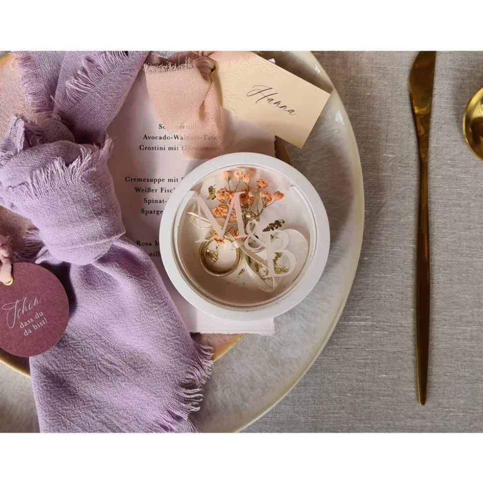 Personalisiere die Acrylscheibe mit euren Namen, dem Datum eurer Hochzeit oder euren Initialen, um diese Ringbox zu einem unvergesslichen Andenken zu machen. Das moderne und elegante Design passt perfekt in jedes Zuhause und ist ein besonderes Geschenk für Dich selbst oder Deine Liebsten.