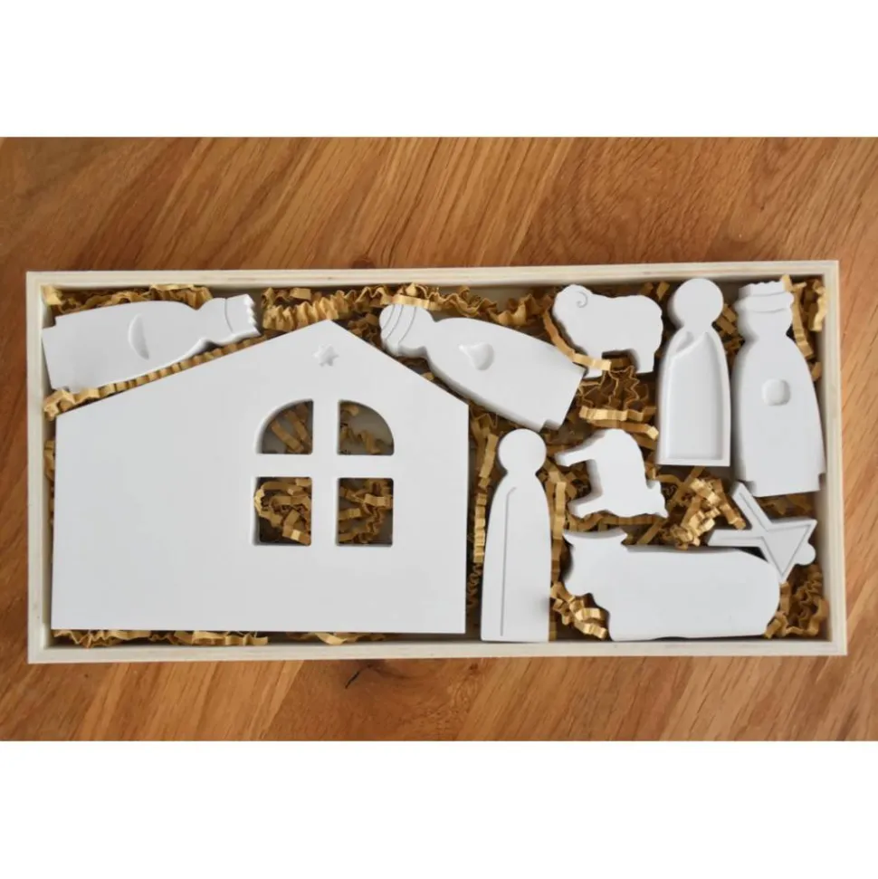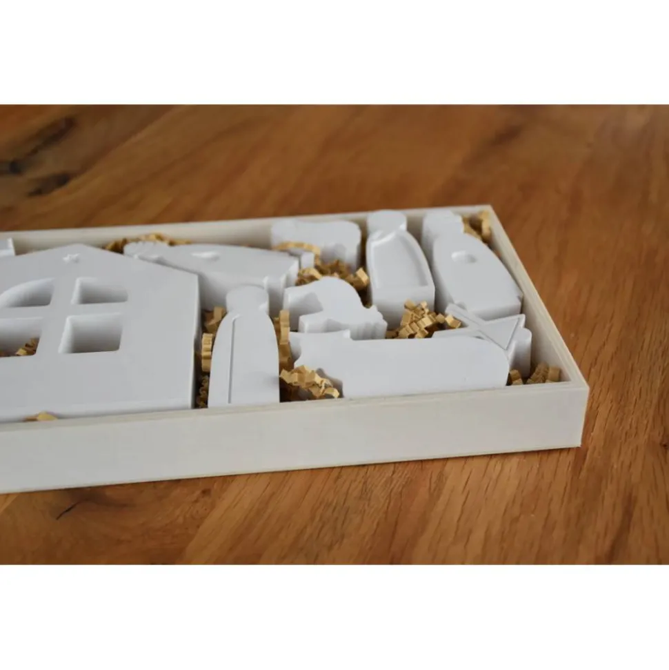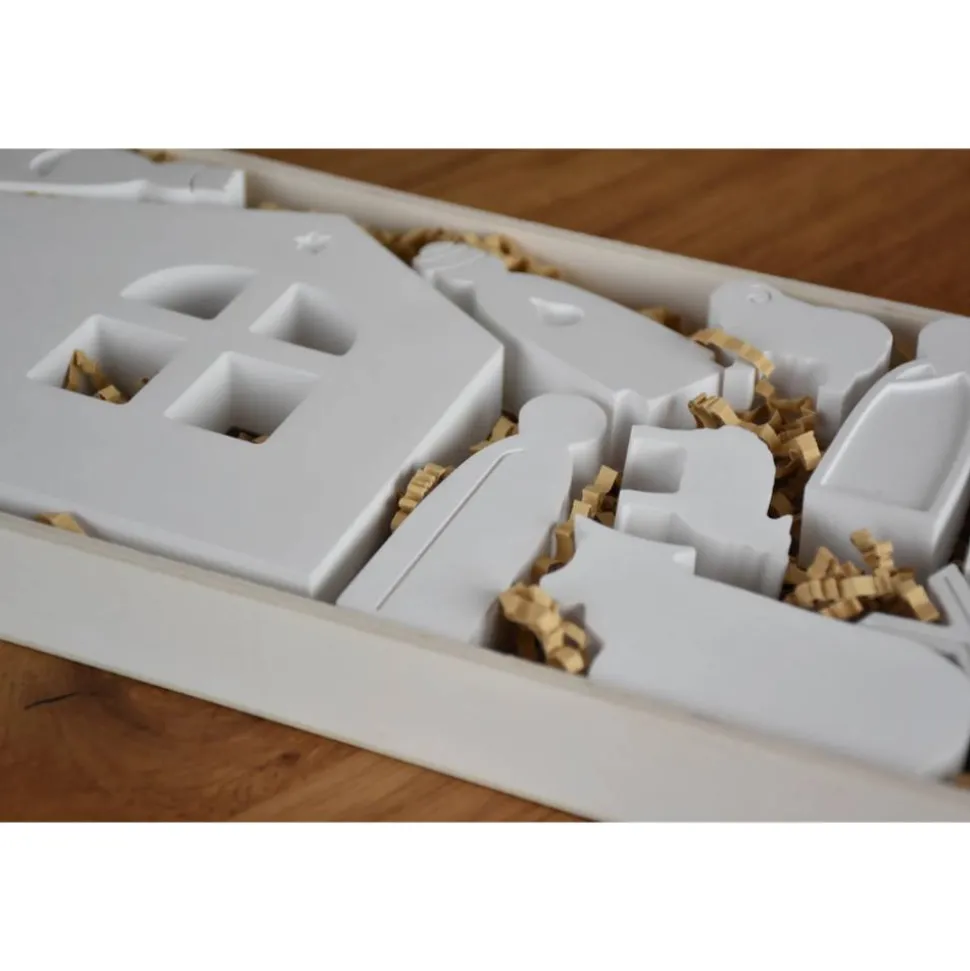 Entdecke die moderne, kleine Weihnachtskrippe aus Raysin200, die von Hand gegossen wird und ein besonders stabiles sowie einzigartig schönes Dekorationsobjekt für Weihnachten ist.