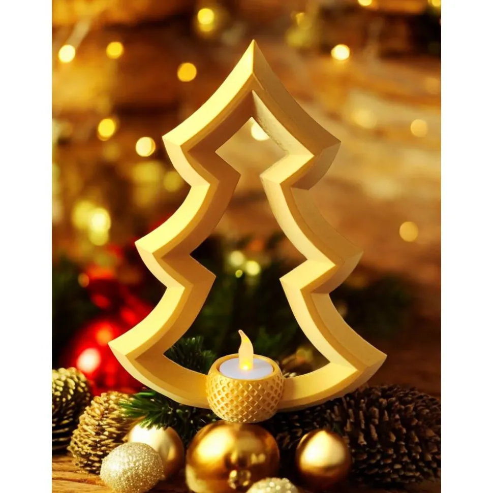 • Design: Moderner, konturierter Tannenbaum mit Teelichthalterung.