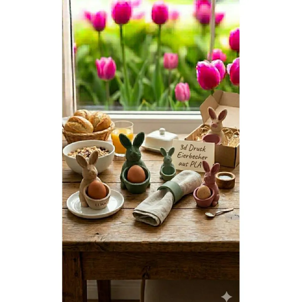 Suchst du nach einer besonderen Dekoration für das Osterfrühstück, die nicht nur stylisch, sondern auch praktisch ist? Unser handgefertigter Eierbecher mit süßen Hasenohren kombiniert minimalistische Ästhetik mit moderner 3D-Druck-Technologie.