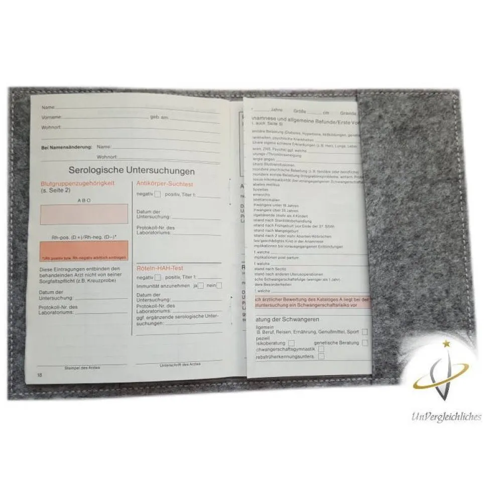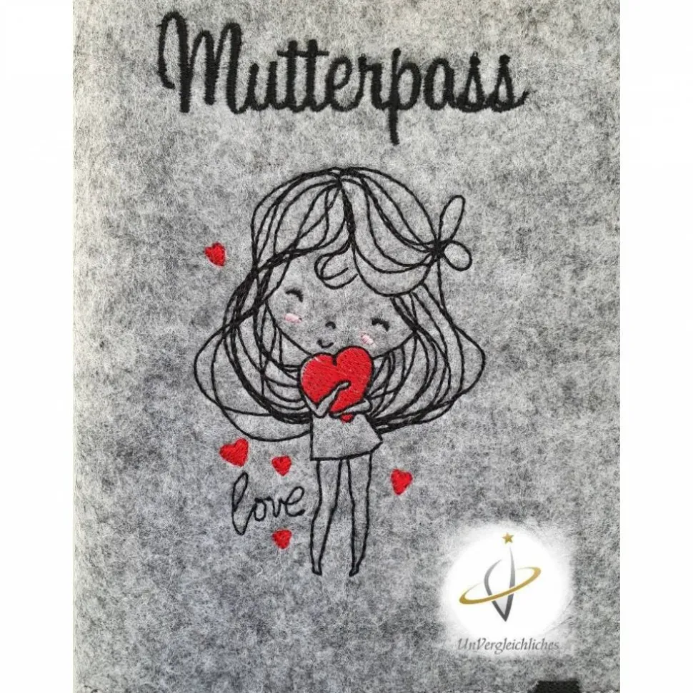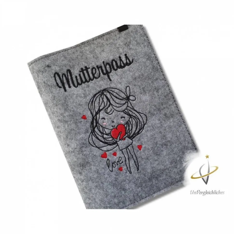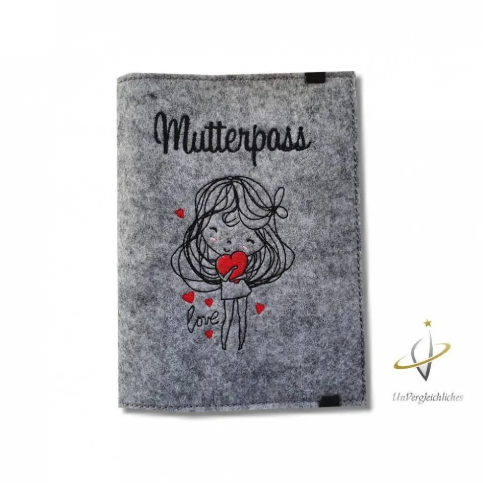 ♥ Die Mutterpasshülle ist aus 2 mm dickem Filz genäht und aufwändig bestickt. Ein Gummiband auf der Rückseite (so ist die tolle Bestickung auf der Vorderseite sichtbar) hält die Hülle fest zusammen, so dass kein Terminszettel oder Ultraschallbild verloren geht.♥