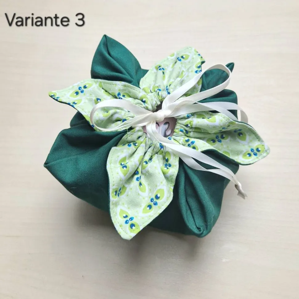 Du kannst Geschenke mit einer Größe von maximal 15 x 15 x 3 cm verpacken oder mehrere kleine.