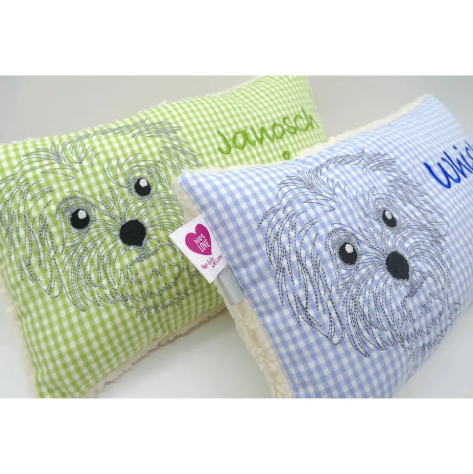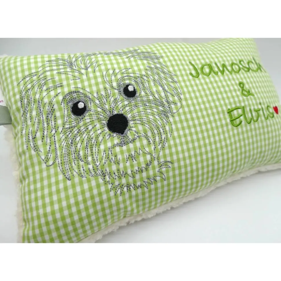 Aufwendig und mit viel Liebe zum Detail genähtes und gesticktes Mini-Kissen