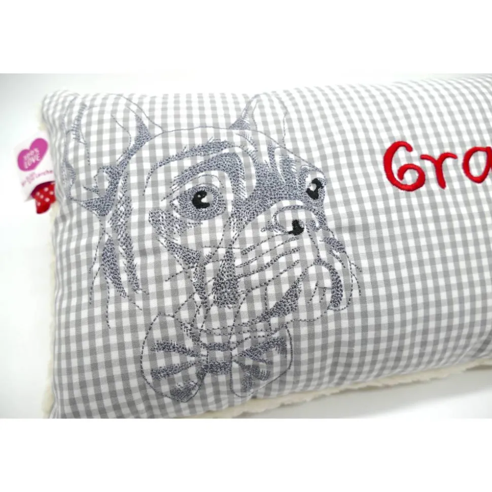 Aufwendig und mit viel Liebe zum Detail genähtes und gesticktes Mini-Kissen