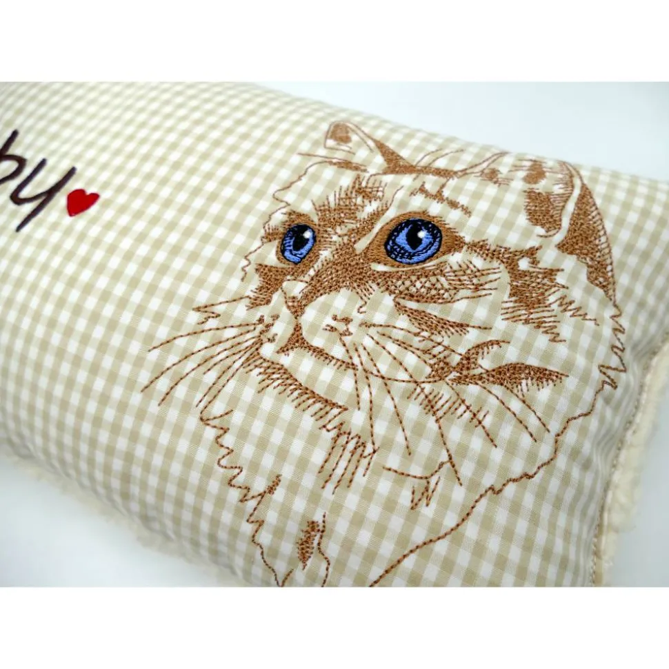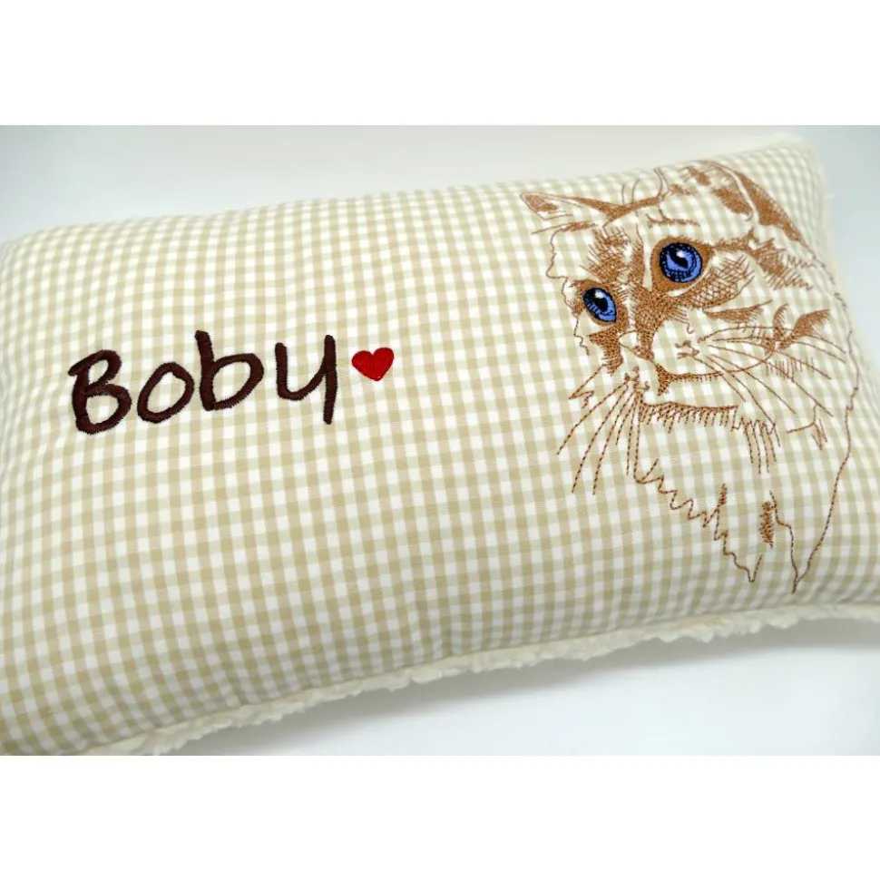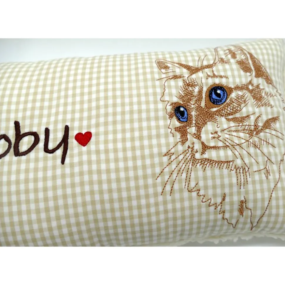 Aufwendig und mit viel Liebe zum Detail genähtes und gesticktes Mini-Kissen