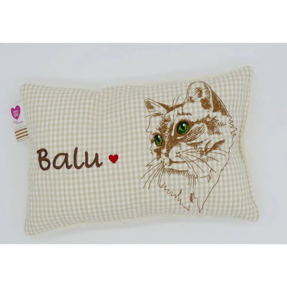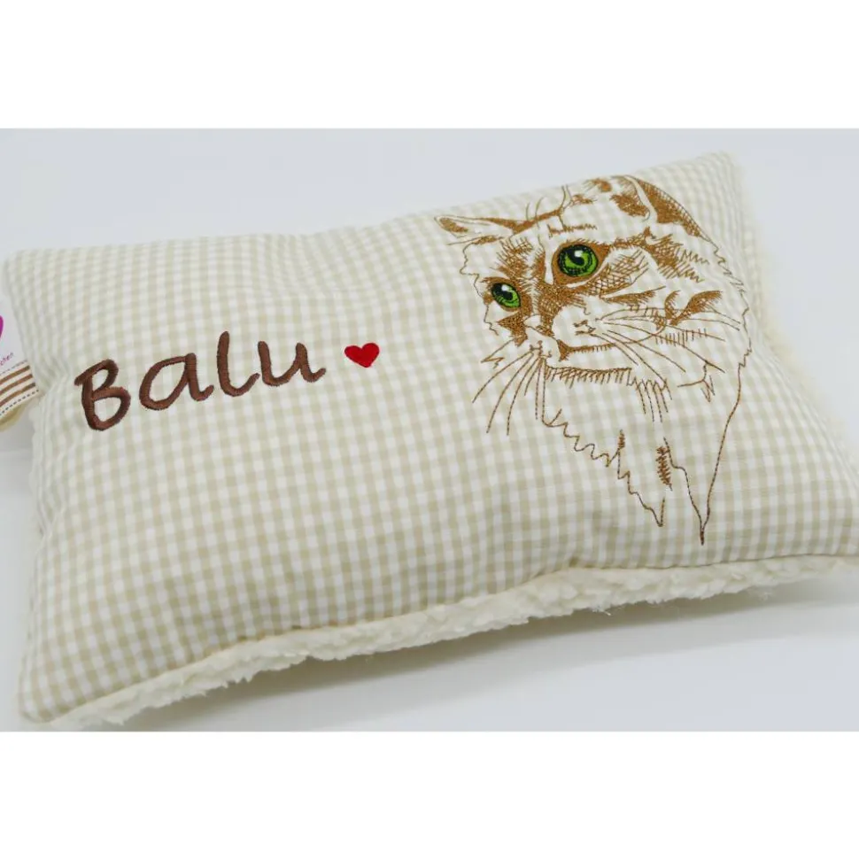 Aufwendig und mit viel Liebe zum Detail genähtes und gesticktes Mini-Kissen