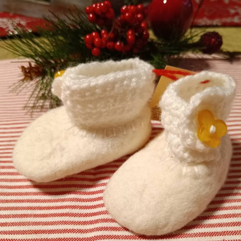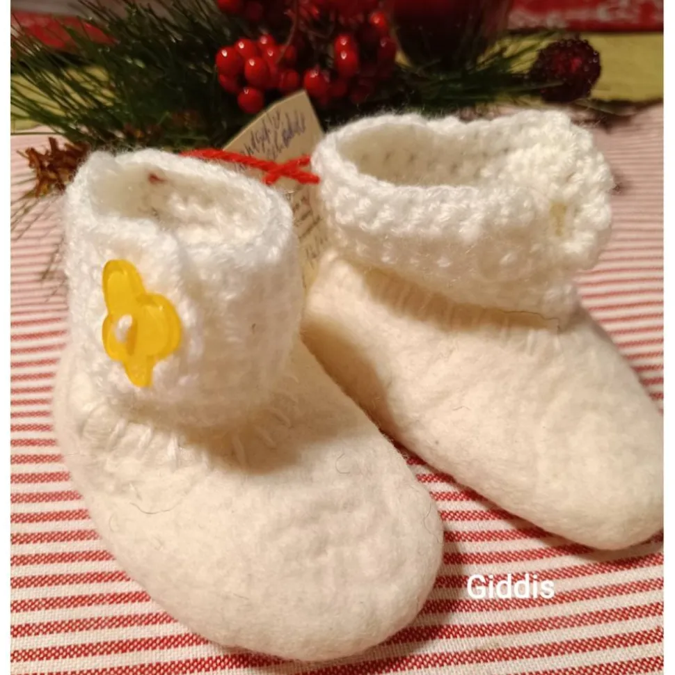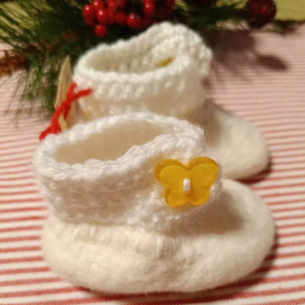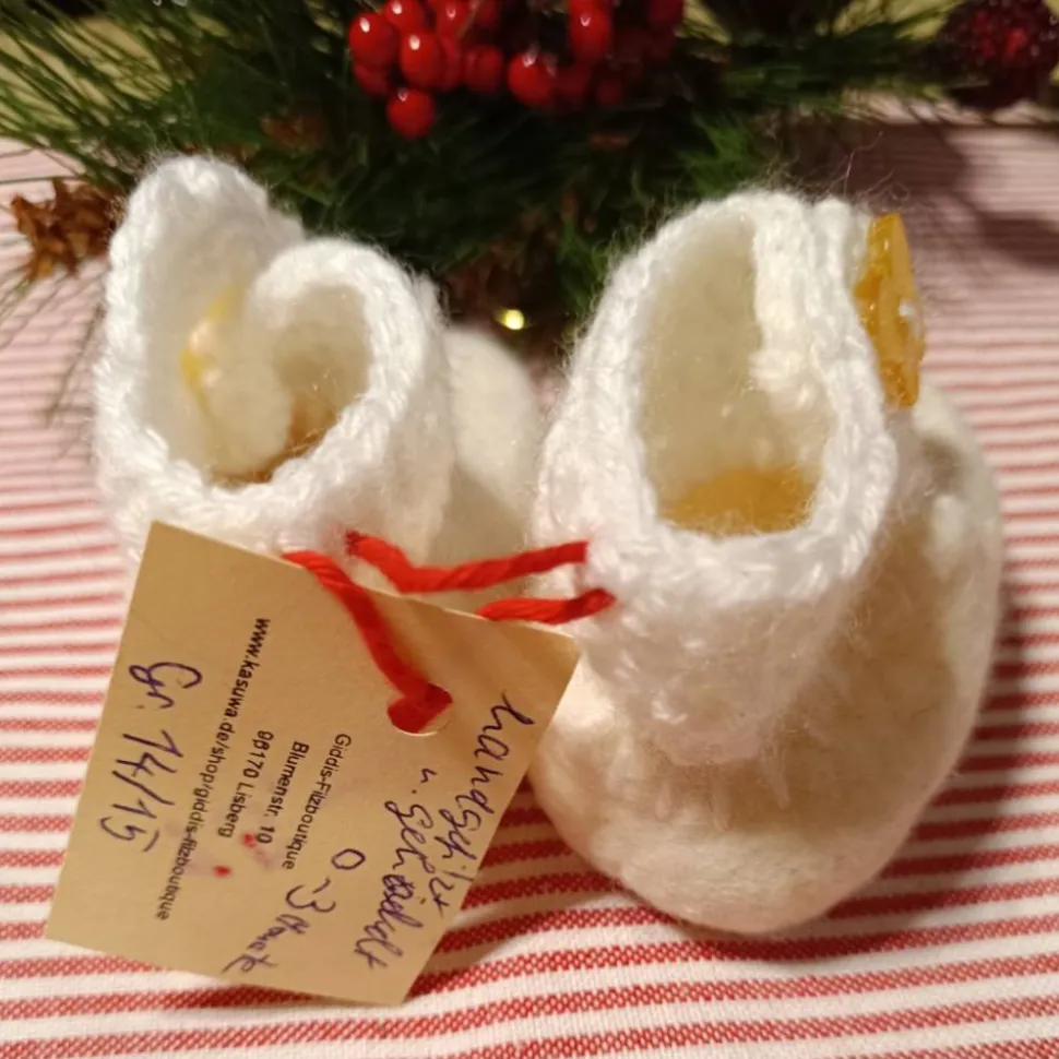 Diese süßen Stiefelchen sind ein Hingucker und halten die winzigen Füße schön warm, am Besten man zieht sie an die blanken Füße, so halten sie den ganzen Körper warm