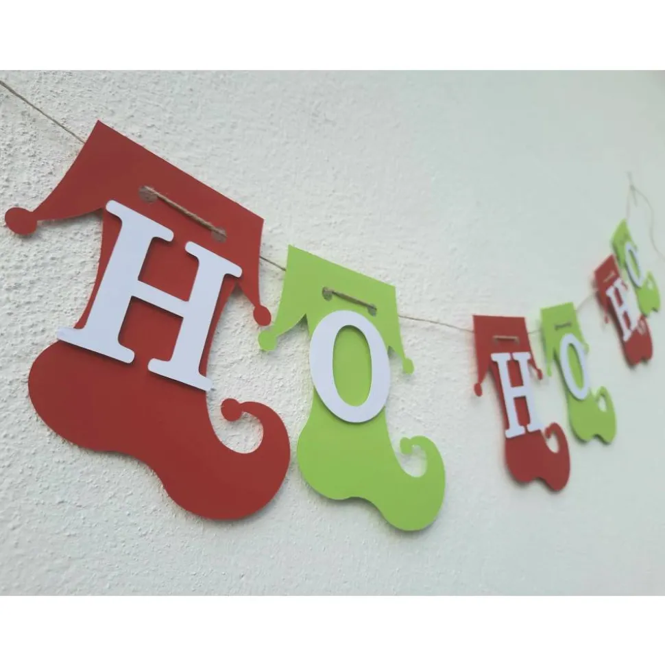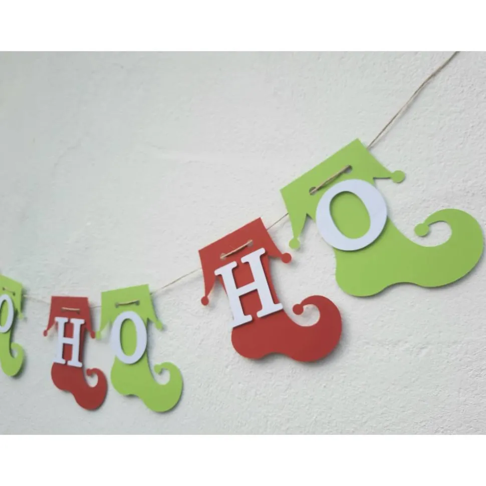 Diese lustige Girlande aus roten und grünen Elfen Stiefeln zieht auf jeden Fall die Blicke auf sich.