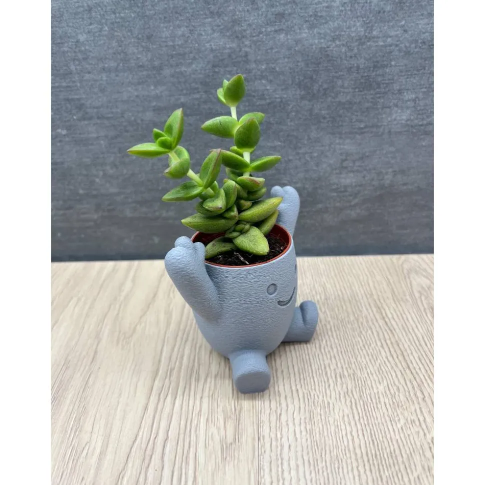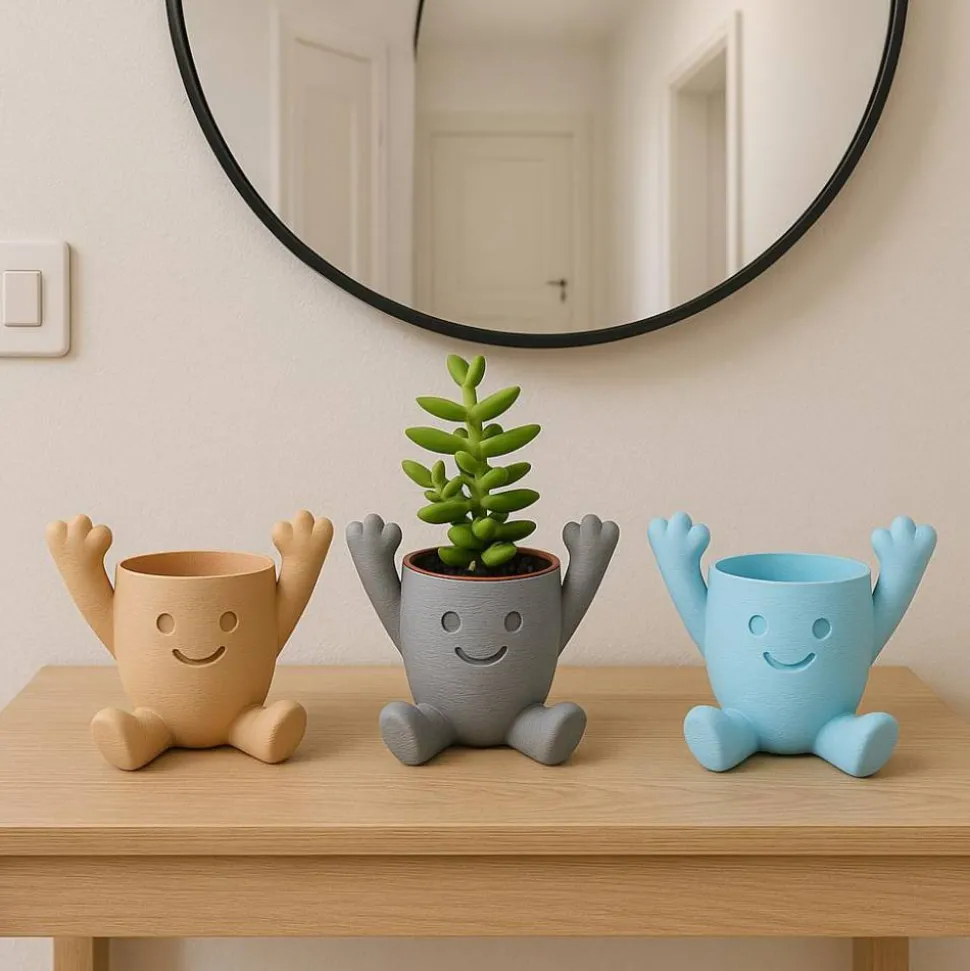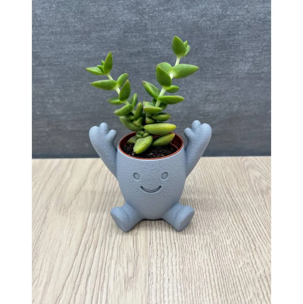 Die kleine Pflanzfigur mit lächelndem Gesicht und hochgestreckten Armen ist perfekt für Sukkulenten, Kakteen & kleine Zimmerpflanzen – ob auf der Fensterbank, im Wohnzimmer, in der Küche oder im Büro.