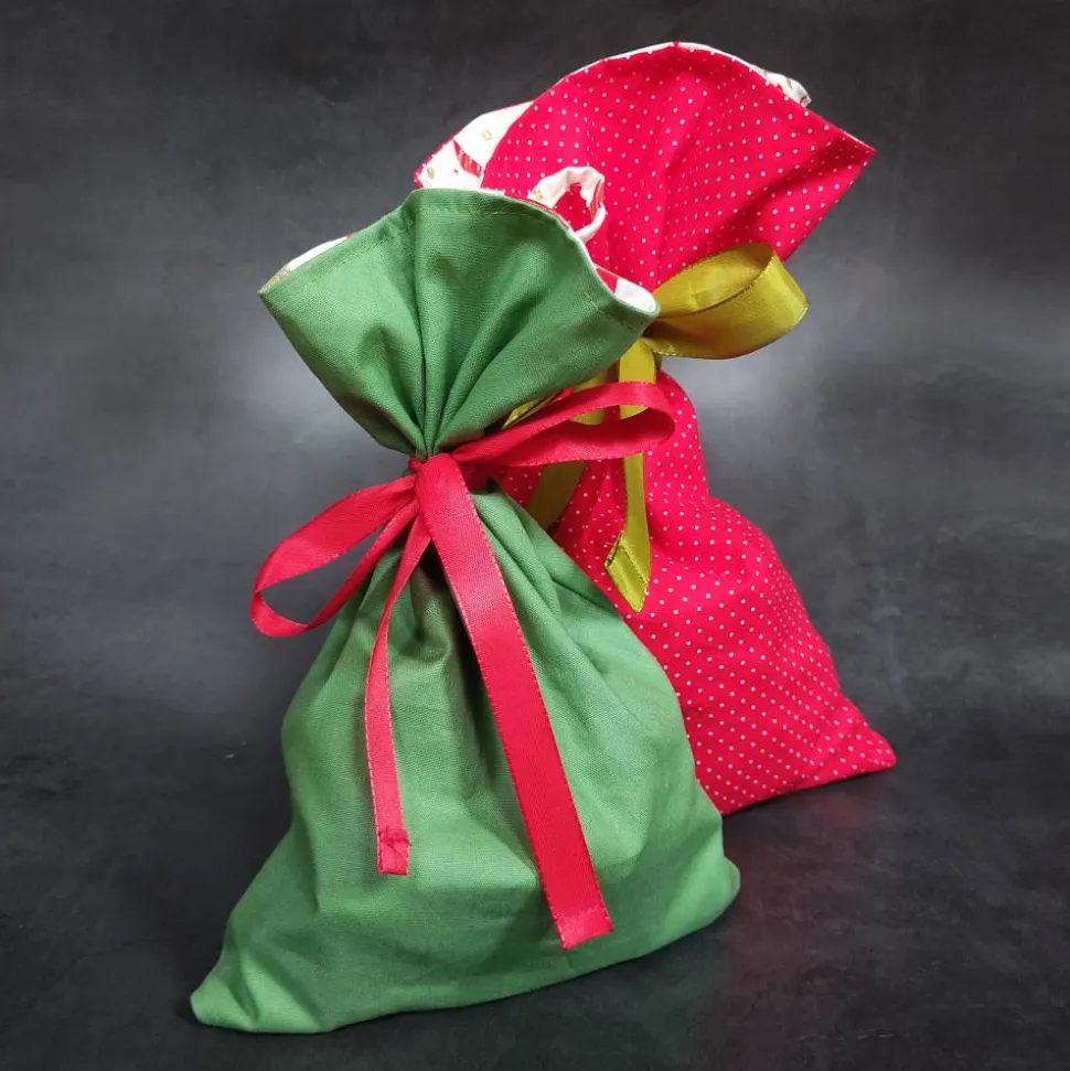 Nachhaltigkeit – auch bei Räuberkind ein Thema. Originelle, weihnachtliche Stoffsäckchen die du als umweltfreundliche Geschenkeverpackung verwenden kannst. Geschenkpapier zu kaufen ist damit nicht mehr zwingend nötig. Unsere Nikolaussäckchen kannst du jedes Jahr wieder neu befüllen und verschenken. Durch die fest angenähte Schlaufe kannst du dieses kleine Säckchen auch super als Dekoration am Kamin nutzen oder zum Nikolaus an die Türklinke hängen. Außerdem kannst du diese beiden Säckchen als Wendesäckchen nutzen.