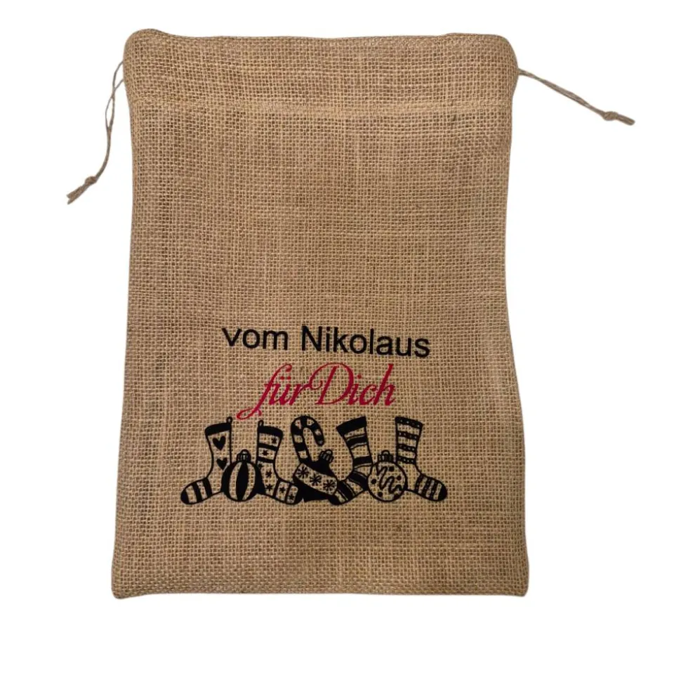 Gefüllt werden können die Säckchen mit den traditionellen Kleinigkeiten, wie Obst und Nüsse, sowie Gutscheinen, kleine Mitbringsel, Geld- und oder Schmuckgeschenke und vieles Mehr. Mit der Größe 30x23cm passt in das Säckchen ordentlich was rein.