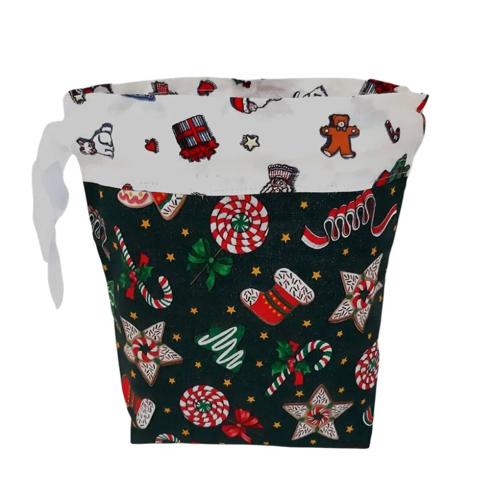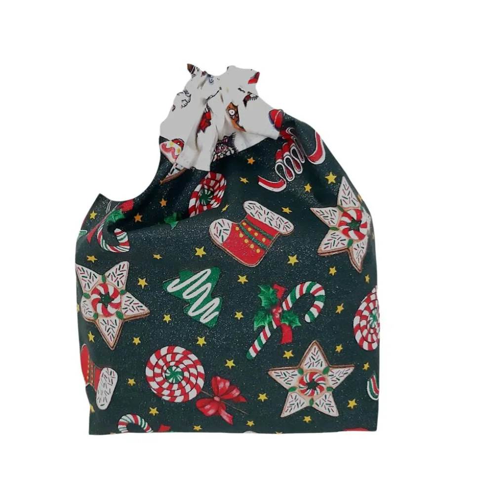 Gern verwendet zum Nikolaus und als Geschenkverpackung zu Weihnachten. Umgeschlagen als Gebäckschale geeignet.