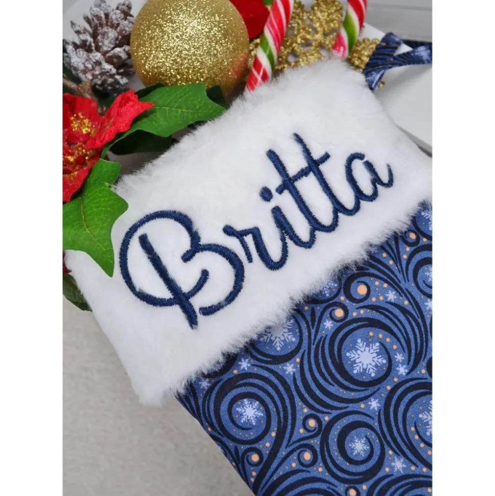 Du kannst deinen High Heel durch einen gestickten Namen in dunkelblauer Schrift personalisieren.
