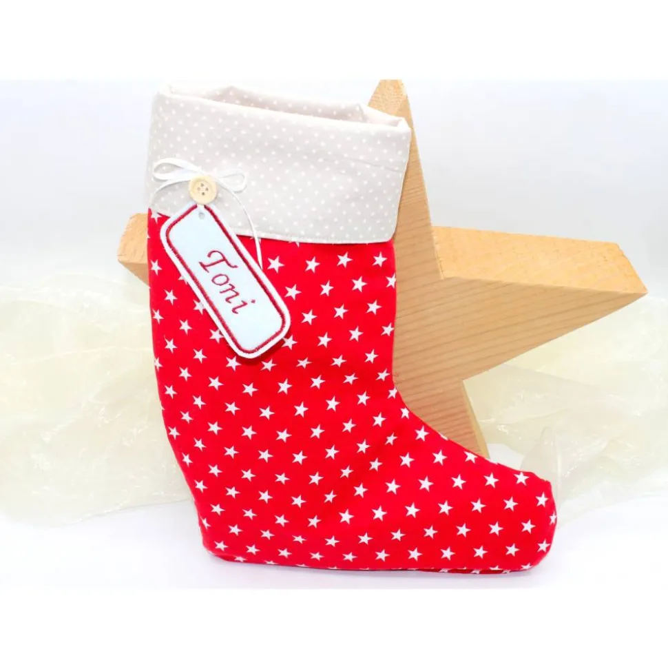 Der Nikolausstiefel ist ohne Inhalt! Der Holzstern im Hintergrund dient nur zur Deko und wird nicht verkauft.