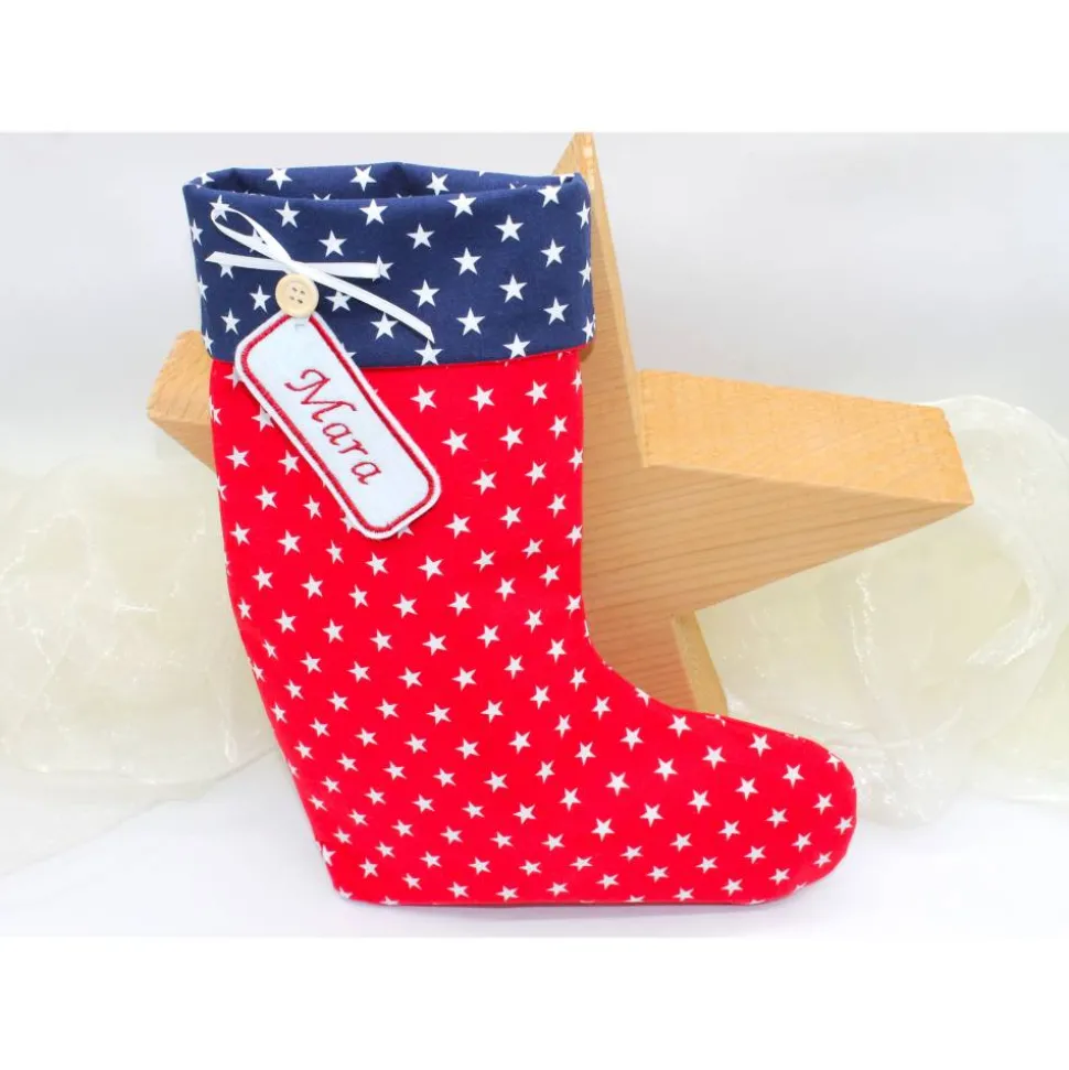 Der Nikolausstiefel ist ohne Inhalt! Der Holzstern im Hintergrund dient nur zur Deko und wird nicht verkauft.