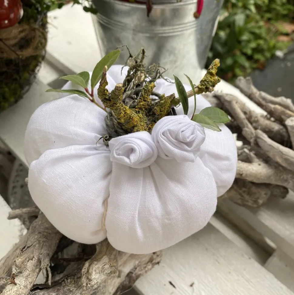 Verleihe deinem Zuhause eine besondere Atmosphäre mit dem nostalgischen Stoffkürbis aus schneeweißem Leinen. Diese handgefertigte Herbstdeko bringt das nordische Wohnglück im Landhausstil zu dir und sorgt für ein gemütliches Hygge-Gefühl in jedem Raum.